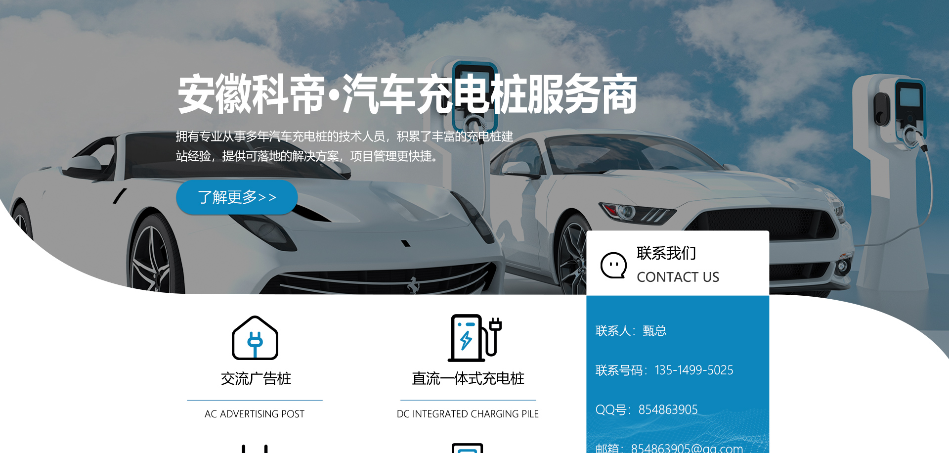 安徽科帝新能源科技有限公司坐落于安徽省會-合肥,是一家研發(fā)、生產(chǎn)智能充電樁設(shè)備,汽車充電站后臺監(jiān)控管理系統(tǒng)和生產(chǎn)高壓開關(guān)設(shè)備的企業(yè).由專門的研發(fā)團隊、管理團隊按照現(xiàn)代化企業(yè)制度規(guī)范設(shè)立的有限責任公司。致力于為能源智能、安全的應(yīng)用和節(jié)能減排提供整體的技術(shù)與產(chǎn)品解決方案。科帝集研發(fā)、設(shè)計、生產(chǎn)、銷售以及服務(wù)于一體,在電動汽車充電方案,充電設(shè)施建設(shè)和城市配電方面擁有廣泛的技術(shù)研究及經(jīng)驗積累,為客戶提供安全、智能的充電設(shè)備及充電運營站建設(shè)一體化解決方案。并堅持以人為本、質(zhì)量為先、顧客至上、不斷創(chuàng)新”的企業(yè)理念,為能源行業(yè)的發(fā)展、節(jié)能減排做出重大的貢獻。公司擁有豐富的產(chǎn)品種類,目前科帝已研發(fā)生產(chǎn)了三十多種產(chǎn)品,充電設(shè)備有直流一體式充電樁、直流分體式充電樁、直流廣告樁、交流廣告樁、廣告一體樁、壁掛交直流樁;等多種充電設(shè)備;每一款產(chǎn)品都是精心打造,力求為客戶提供優(yōu)越的用戶體驗。展望未來科帝將通過持續(xù)的自...